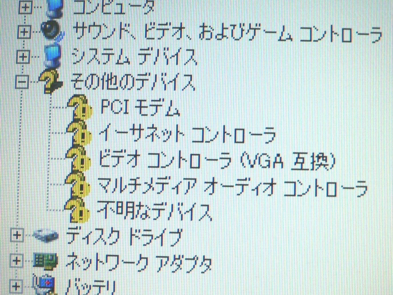 です。「不明なデバイス」と表示されてるのは、実は電源系のデバイスです。