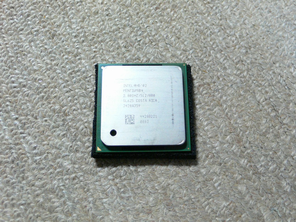 ペンティアム4の2.8CGHz(中古)です。なぜプレスコットにせず、ノースウッドなのかというと、ちょっと消費電力が気になったので・・・(笑)